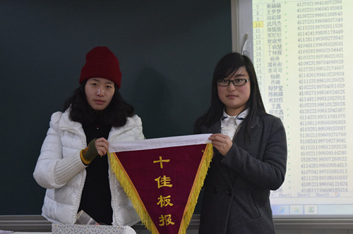 2015年11月25日19时,旅游管理系团总支宣传部为板报优秀和十佳班级颁发了红旗,以资鼓励。