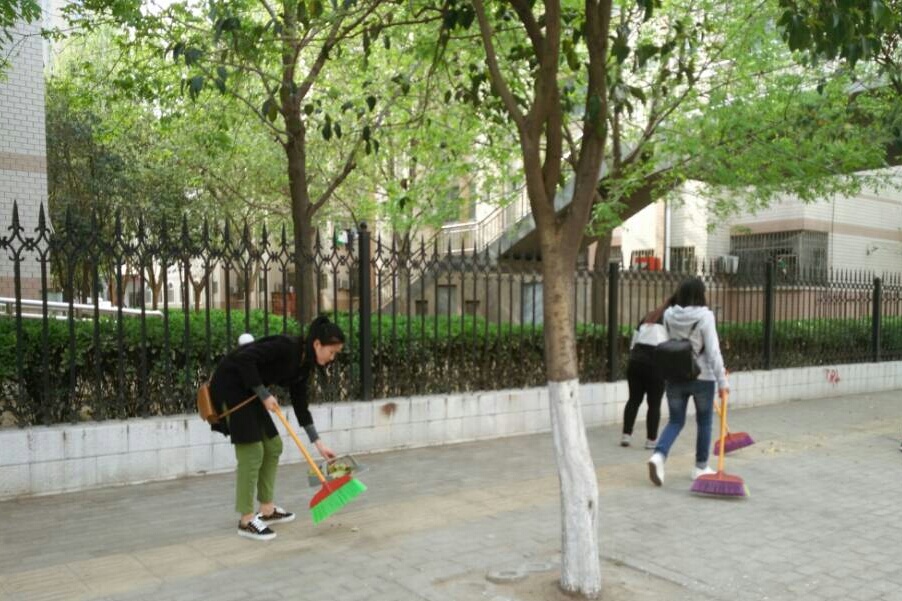 2016年4月7日16时,在旅游管理系系门口举行建设美好学院“打扫校园”活动。该活动由青年志愿者协会举办。