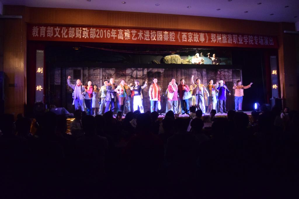 4月24日19时在郑州旅游职业学院三楼礼堂举行了高雅艺术进校园秦腔《西京故事》。出席本次活动有副院长张建军、党总支书记肖靖、团总支书记金慧慧、和各系辅导员等老师。本次活动是为了提高郑州旅游职业学院学生的文化修养,由教育部、文化部、财政部联合实施的。