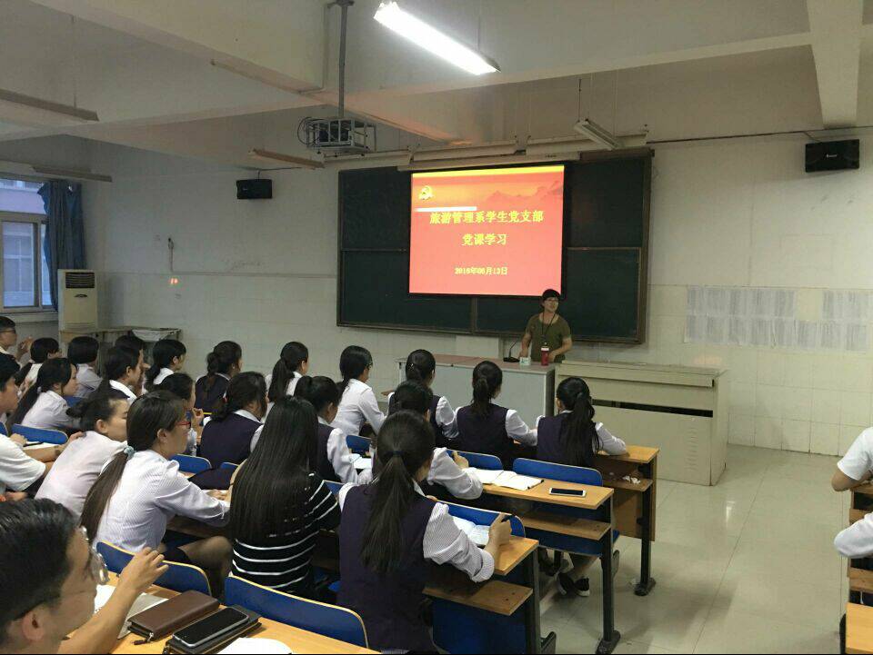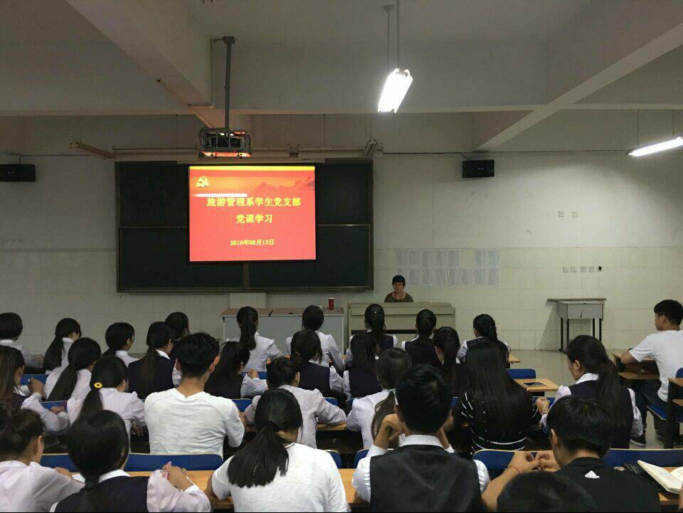 为了加强同学们对党史知识、党章以及习近平系列讲话、党的十八届四中全会精神等方面的知识的学习。2016年6月13日19时,旅游管理系团总支干事在西教学楼203教室参加了党课学习会议。