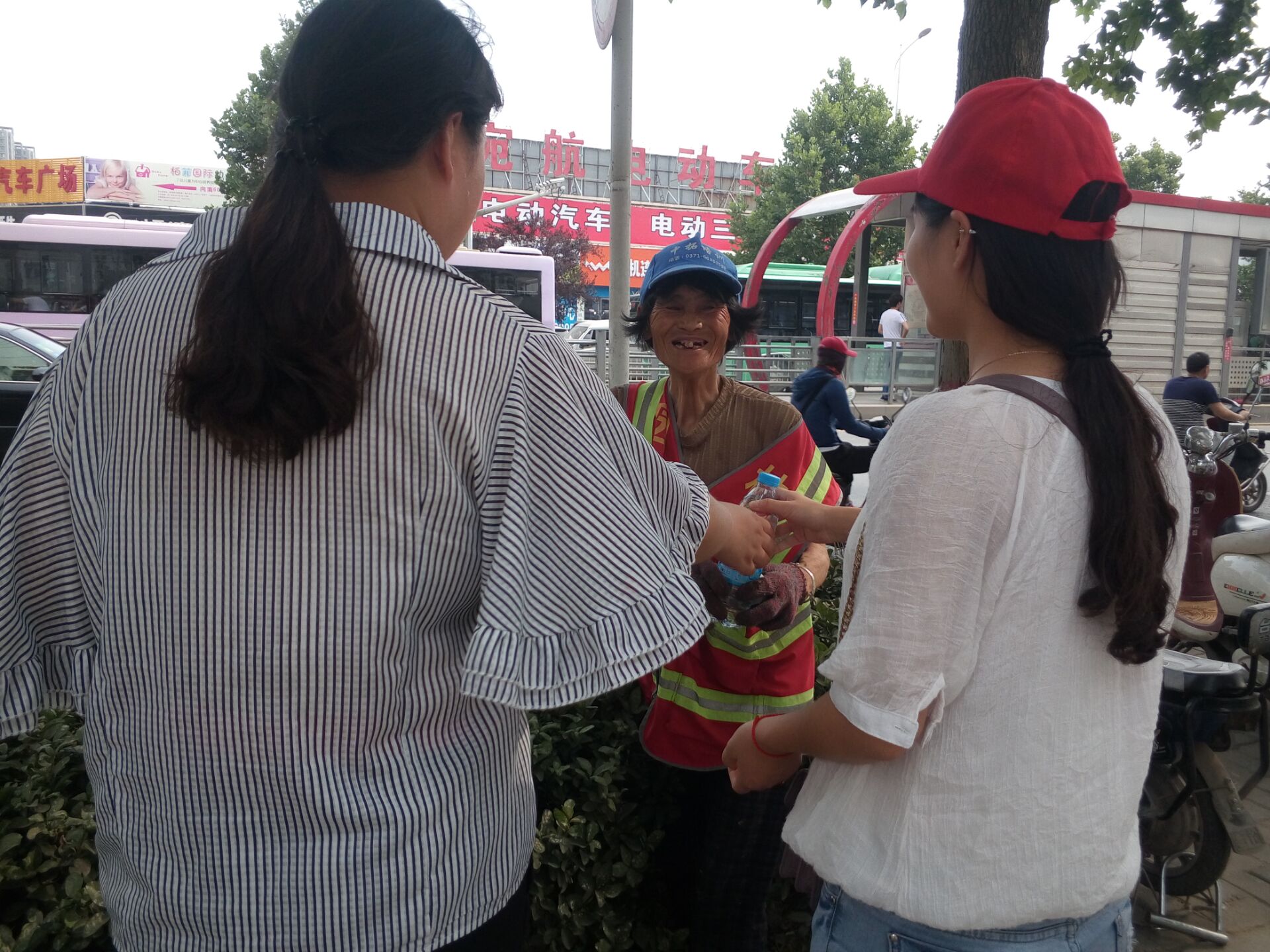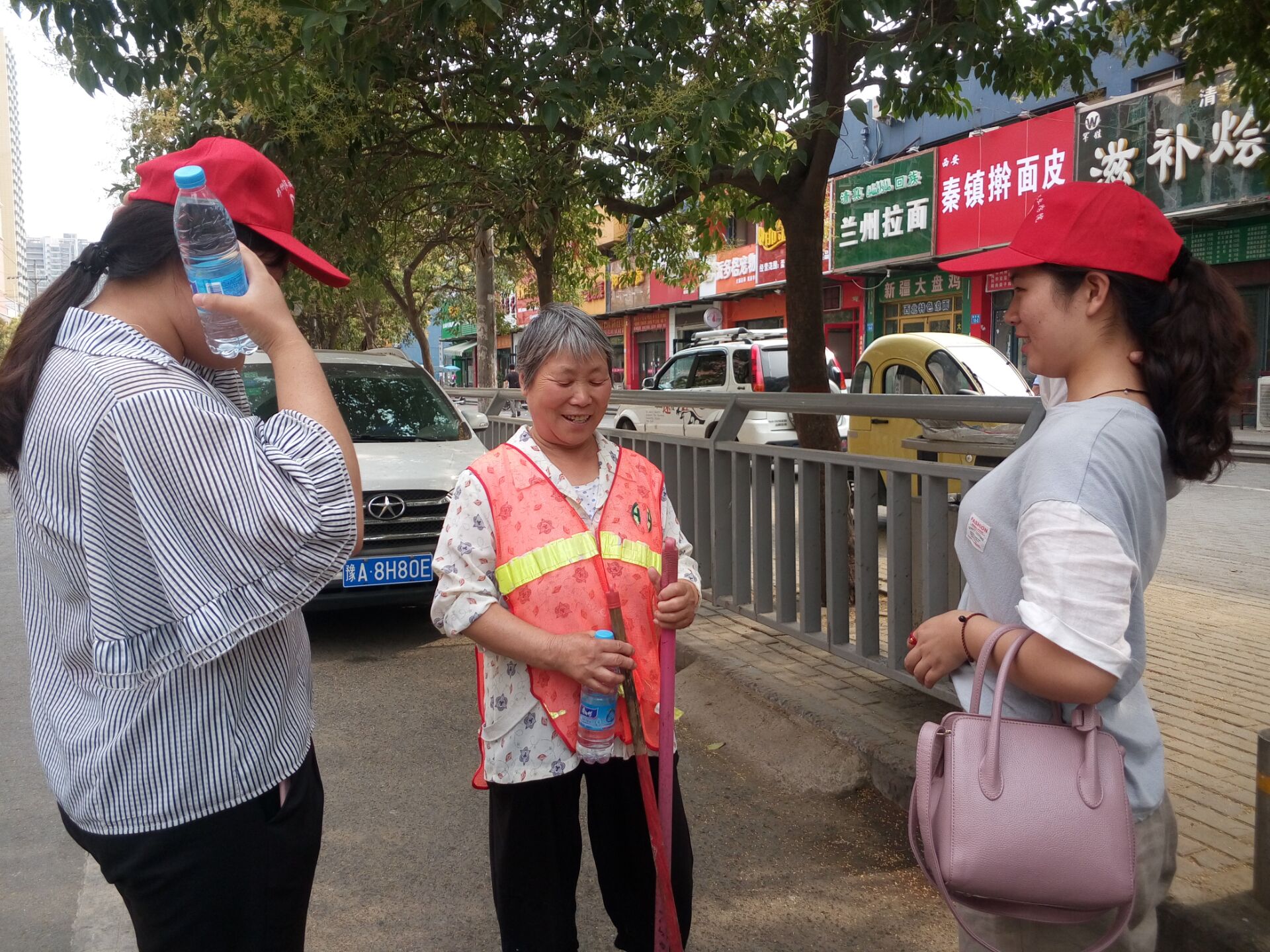 为了慰问环卫工人的辛苦,6月13日,团总支干事顶着烈日炎炎,零距离接触城管环卫工人,为辛勤工作的环卫工人们送水防暑。