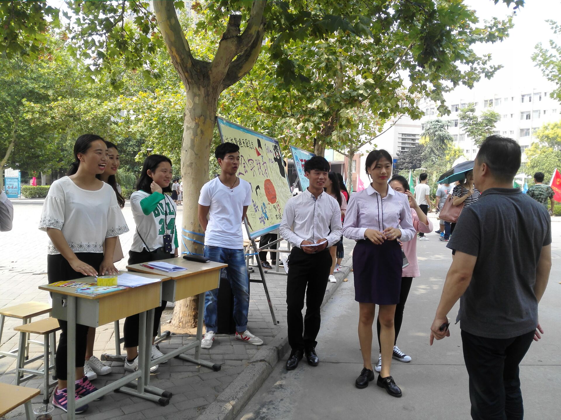 2016年9月12日旅游管理系团总支干事在西教学楼门口举行团总支招新活动。招新活动前团总支干部精心布置面试现场,此时的16级新生还正在操场上军训,军训休息的时候,已经有不少新生来到这里,询问情况,面试过程中,干事们认真提问,16级新生也积极表达自己的想法,团总支共有五个组成部分,办公室、宣传部、组织部、社会实践部、青年志愿者协会,这五个部门都有各自的分工,他们结合自身的优点与优势,积极参与这次的招新大会。