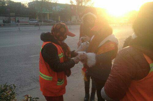 志愿者们带着提前准备好热水壶和纸杯准时到达指定地点,向公路旁的“城市美容师”递上一杯热水,道一声辛苦,并帮助他们一起打扫周边卫生,体验作为环卫工的辛劳。杯水有限,爱心无限。在一声声感谢与鼓舞中,志愿者们更加坚定了继续参与公益活动的信念。