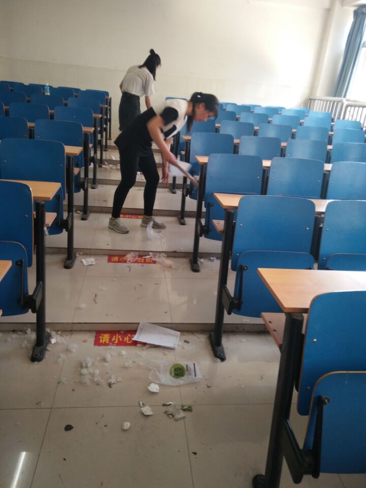 干净的教室不是打扫出来的,而是保持出来的,为了提高我院学生自我管理的能力,营造"干净,文明"的教室,我系社会实践部特于2017年5月18日举办了"争文明,创美好生活环境”的活动。