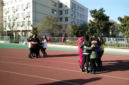 为丰富同学的课余生活,增强同学们之间的友谊团结。2015年12月14日下午4时,15级酒店管理系各班在操场开展了本周班级活动——抱团游戏。