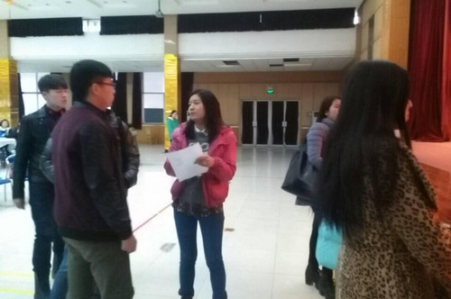 2014年12月18日19时30分在学生1号餐厅三楼礼堂展开了我系12.9活动大彩排。到场的主要负责人有学生书记李梦梦.学生会主席马路遥.副主席左斌超.办公室主任吴兰兰.组织部部长李光辉和青志部部长闫俊杰等人。随后我系团总支书记刘晓丹老师在百忙之中现场亲临指导。