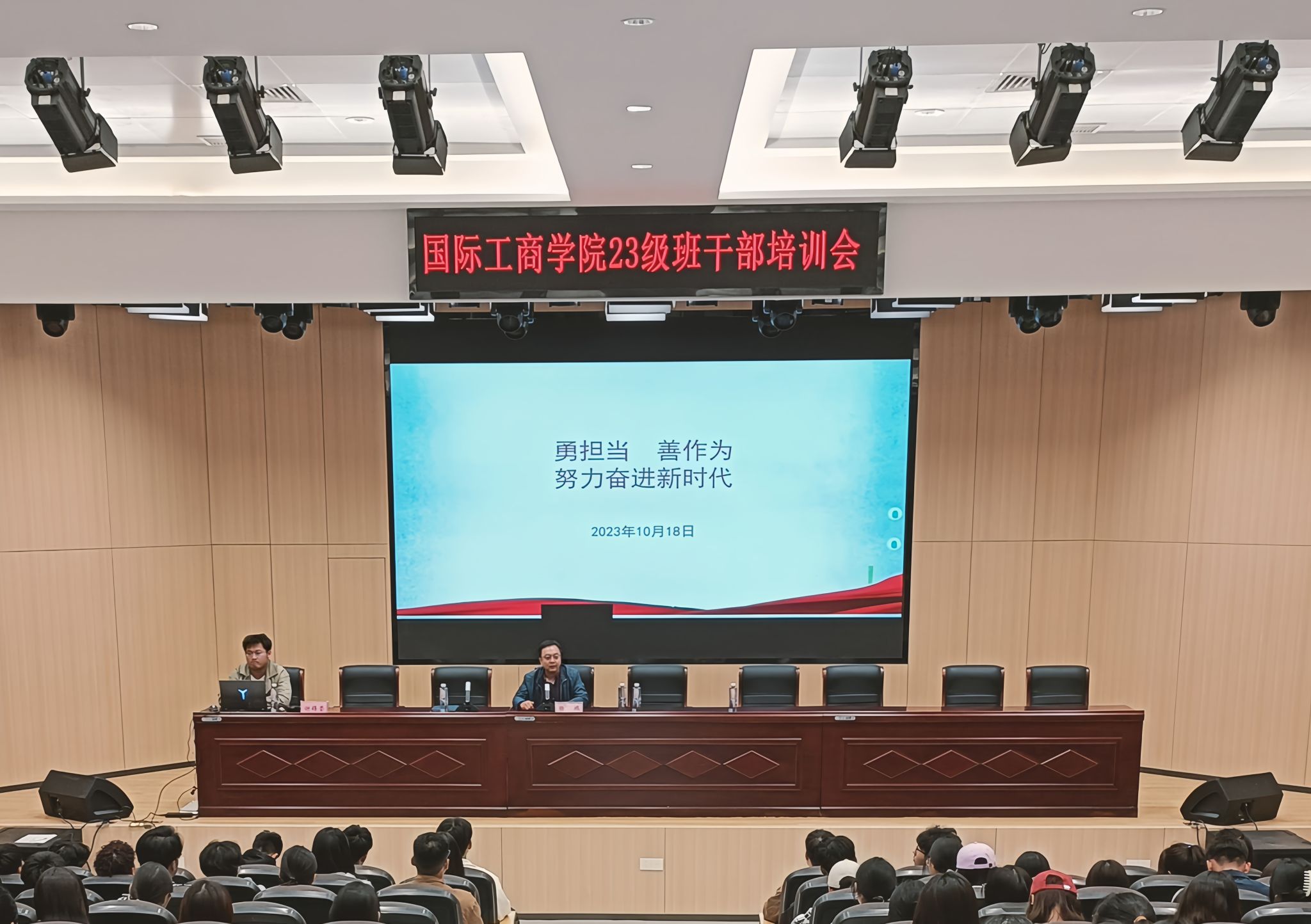 为深入学习贯彻习近平新时代中国特色社会主义思想主题教育,培育勇担当,善作为的新时代青年。10月18日下午15:20,国际工商学院党总支书记在1A西侧报告厅为学生讲党课,主题为:勇担当 善作为 努力奋进新时代。我院团总支书记谢锡莹、23级各班班干部及部分22级学生干部参加。