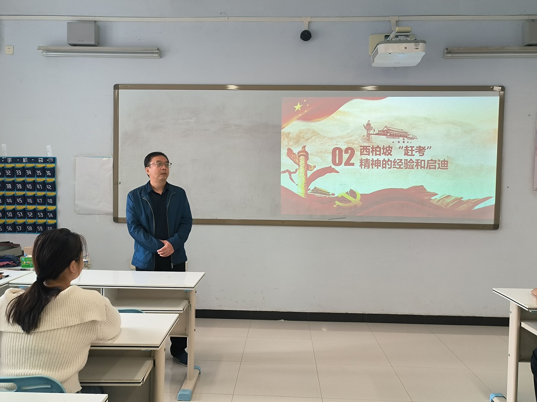 为学习弘扬西柏坡“赶考”精神,展现青春风采,国际工商学院学生党支部于10月26日在教学楼1B501开展“西柏坡‘赶考’精神” 主题党课学习。本次党课由国际工商党总支书记张鹏书记讲授,学生党支部书记葛秀丽,学生党支部副书记孙文霞以及22级入党积极分子参加。