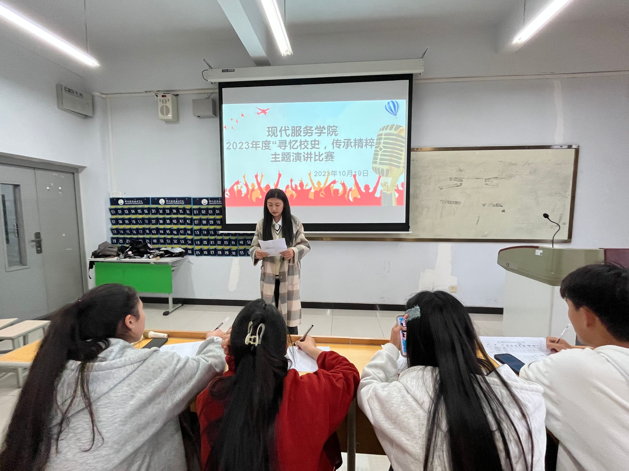 通过此次“寻忆校史,传承精粹”的系列活动,现代服务学院的同学们不仅在校史馆的参观中切身感受到了学校源远流长的历史文化,体会到了学校“立德修能,知行合一”的校训理念,增强了同学们的爱校情怀。而且通过主题演讲比赛使同学们深入了解并回望见证了学校悠久的历史文化和光辉事迹,亦峥嵘岁月,谱写未来华章。