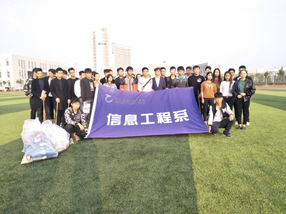 2017年10月26日下午四点,信息工程系二级团校所有学员在冯思源老师的带领下在学院的足球场开展了以“校容美化”为主题的《公益活动》。