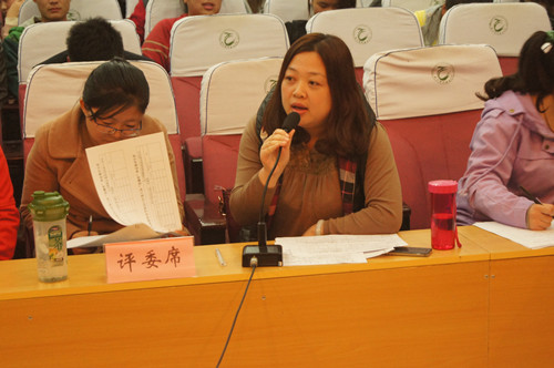 辩论的各个环节进行完之后,杨蓓蓓老师对辩手们的表现进行了深入细致地剖析和评价,提出了对辩手们的期望,也鼓舞了辩手们的士气。最终,反方旅游外语系以微弱的优势胜出,反方三辩韩艳红荣获最佳辩手称号。