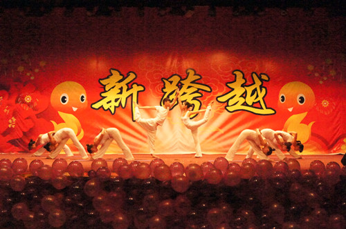 广阔星空般的舞台幕布,不断闪烁变换的霓虹灯,时隐时现的彩灯,使“中国梦 青春校园行”文艺汇演揭开了神秘面纱。台下挥舞的荧光棒与同学们的喝彩加油声回荡在整个三楼礼堂。轮滑社令人拍手叫绝的《花样轮滑》、侧翻、倒立、过障碍物,知性优雅的瑜伽、舞韵瑜伽《菩萨蛮》、热情似火的乐队《追梦赤子心》、爵士舞《Run the world》等节目无不让现场的气氛层层高涨,赞助方梵我瑜伽馆也为观众带来了精彩的瑜伽展示。现场氛围达到了高潮,现场观众的欢呼声、尖叫声更是激动人心。