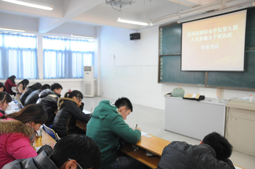 2013年12月31日中午12时30分,郑州旅游职业学院第九期入党积极分子培训班进行结业考试。