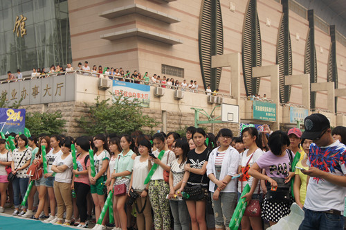 选手们入场后,按先后顺序领到号码牌而后有秩序的到候场区等待。同时,观众们情绪高涨,为参赛选手们加油。