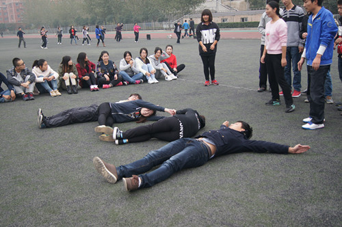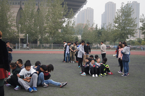 2014年10月30日16时,郑州旅游职业学院团委在操场举行了团干拓展训练。此次活动的目的是促进大家交流感情,培养大家团队意识。