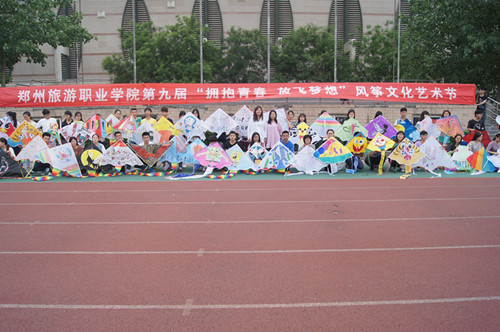 2015年5月14日下午,由郑州旅游职业学院主办、院团委承办的“拥抱青春 放飞梦想”第九届风筝文化艺术节在院团委董明珠老师、崔灵玲老师的带领下于旅院操场拉开了帷幕。