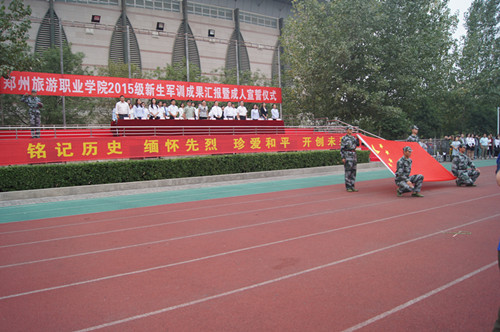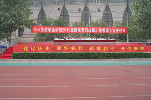 军训成果汇报在庄严的军歌中开始。学生方阵逐一通过主席台,进行了分列式汇报;女生代表和男生代表还分别表演了军体拳等,向学院领导、教官和老师们展示了这13天来的军训成果。表演后,副院长张建军宣读了《郑州旅游职业学院关于对优秀军训集体和个人的表彰决定》,对在军训中表现突出的集体和个人进行了表彰。