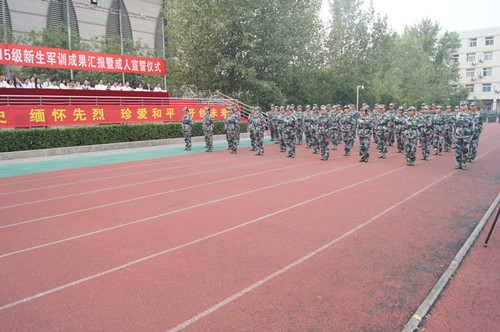 2015年9月23日下午,我院2105级新生军训成果汇报暨成人宣誓仪式在学院田径场举行。学院党委书记岳俊华,院长樊豫陇等校方老师与部队领导出席大会。会议由院长樊豫陇教授主持。