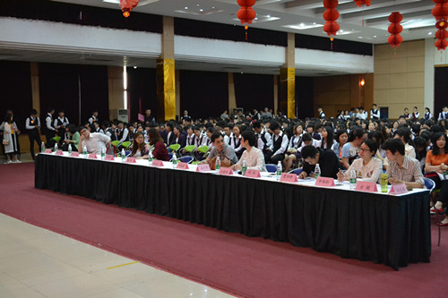 5月11日下午,郑州旅游职业学院三楼礼堂华灯璀璨,座无虚席。由院团委主办,社会服务系承办的2016年“扬文明礼仪新风,展旅院学子形象”文明礼仪风采大赛决赛盛情上演。各系主任、团委领导、学生处领导和各系团总支书记与千余名学生一起观看比赛,艺术体育部副主任贾书峰,礼仪教研室主任王建华,钱锐老师,方颖老师,申桂红老师担任评委,共同感受激情壮美的魅力之夜。