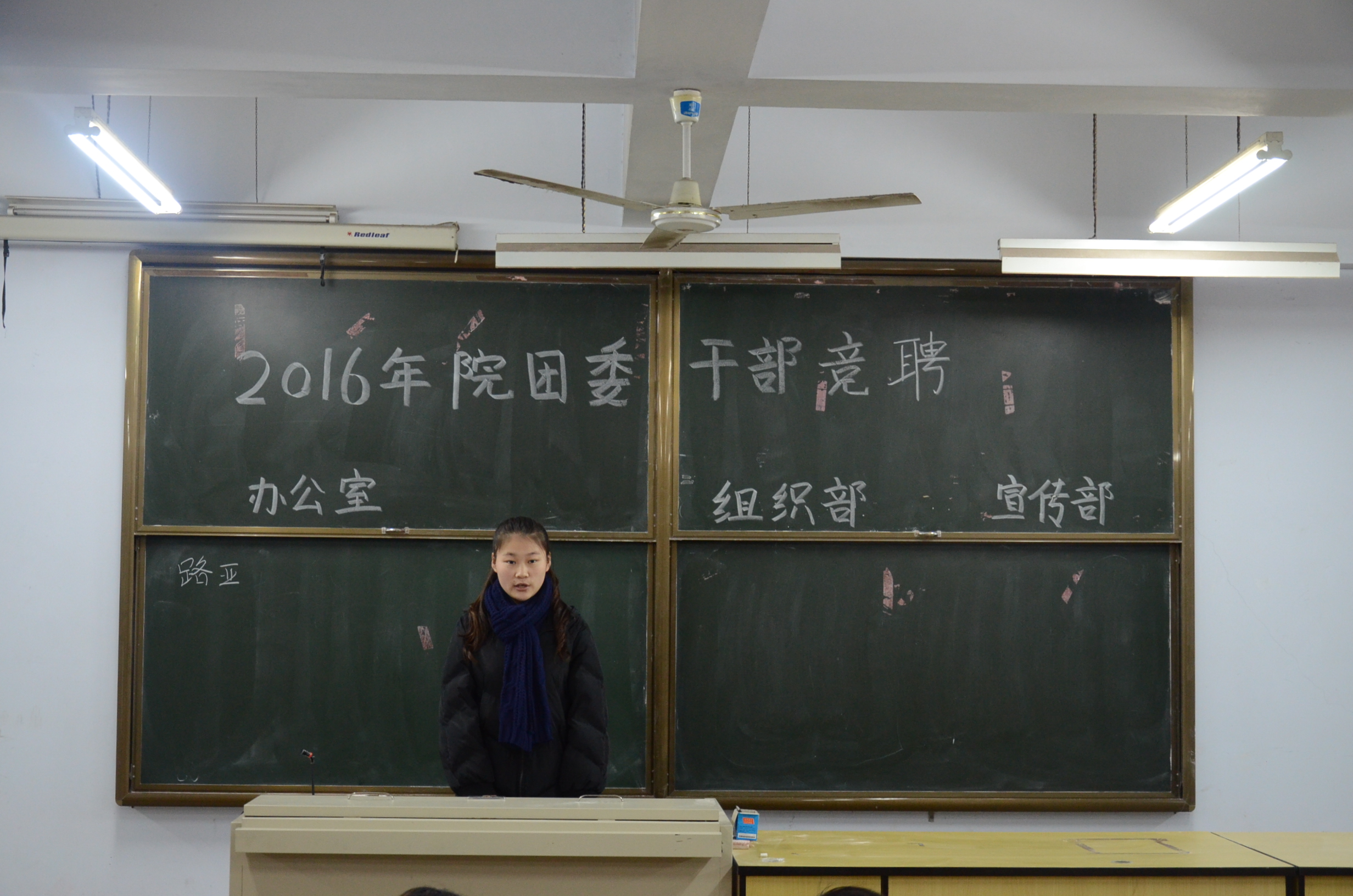 竞聘面试为期两天,来自各系的205位优秀团干们参与面试。每位团干上台三分钟演讲,在演讲后回答老师提出的问题。