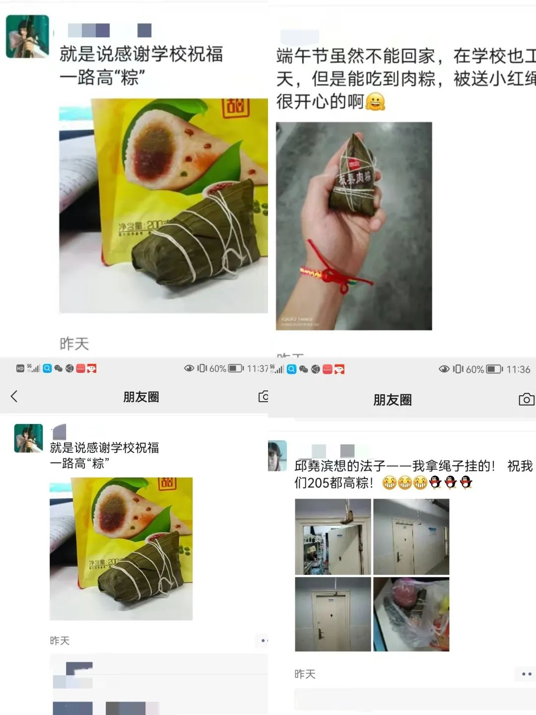 学校无微不至的关怀深深打动了在校备考的考生,不少学生在朋友圈等社交平台“晒幸福”,分享学校的关怀,一起开启高“粽”时刻。