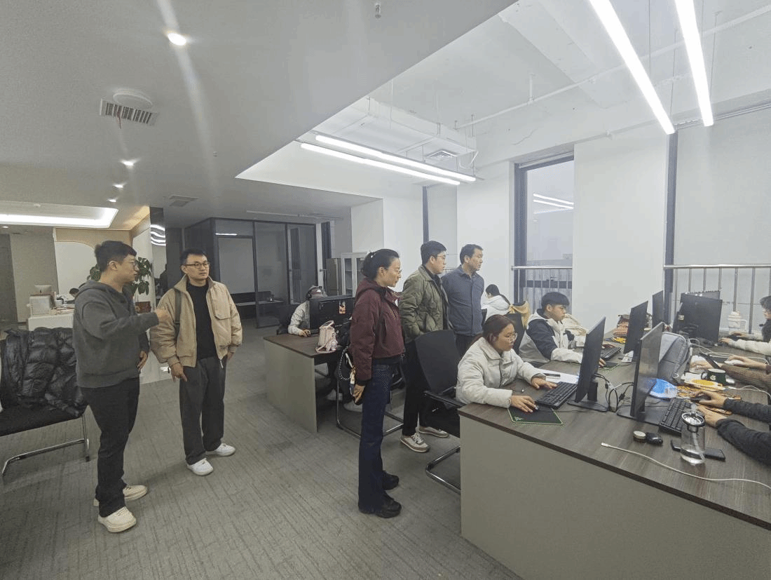 各位老师首先在葱头文化传媒公司负责人的陪同下,参观了公司的办公环境、后期机房等,深入了解了公司核心团队配置与主要业务方向。葱头文化团队在“微短剧工业化生产”上的高效工作流、以“AIGC技术赋能内容创作”的创新模式以及敏锐的市场网感,给访企交流的教师们留下了深刻印象。