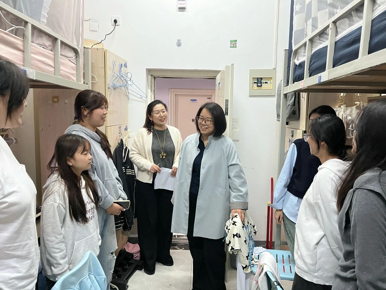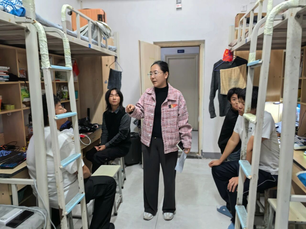 随后,全体辅导员深入宿舍,进行全面走访。每到一处,辅导员们都与学生亲切交流,了解他们在假期中的学习收获、生活趣事,倾听同学们新学期的规划与诉求。对于同学们提出的关于课程安排、校园活动等方面的疑问,辅导员们耐心解答,提供切实可行的建议。