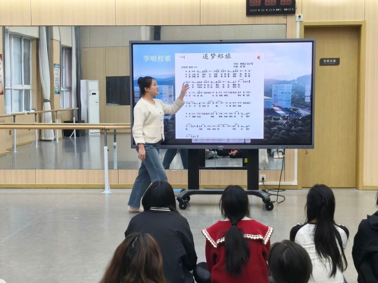 随后,进入校歌学唱环节。各班同学认真学唱校歌《追梦郑旅》,大家跟随着激昂的旋律,深情演唱,在歌声中感受学校的办学理念和精神风貌,进一步增强了对学校的认同感和自豪感。