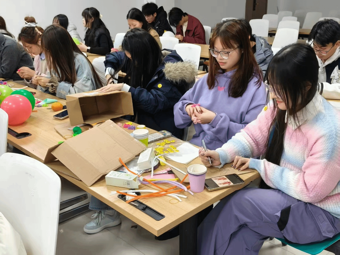活动现场氛围热烈,同学们脑洞大开、各显身手。大家围绕手中的废旧材料,充分发挥想象力与创造力,剪、折、粘、缝等动作有条不紊。原本不起眼的闲置物品,在同学们的巧手下逐渐变身成创意收纳盒、个性装饰品、实用小摆件等各类好物。过程中,同学们相互交流创作思路、分享手工技巧,在体验动手乐趣的同时,也结识了志同道合的伙伴,现场充满欢声笑语。