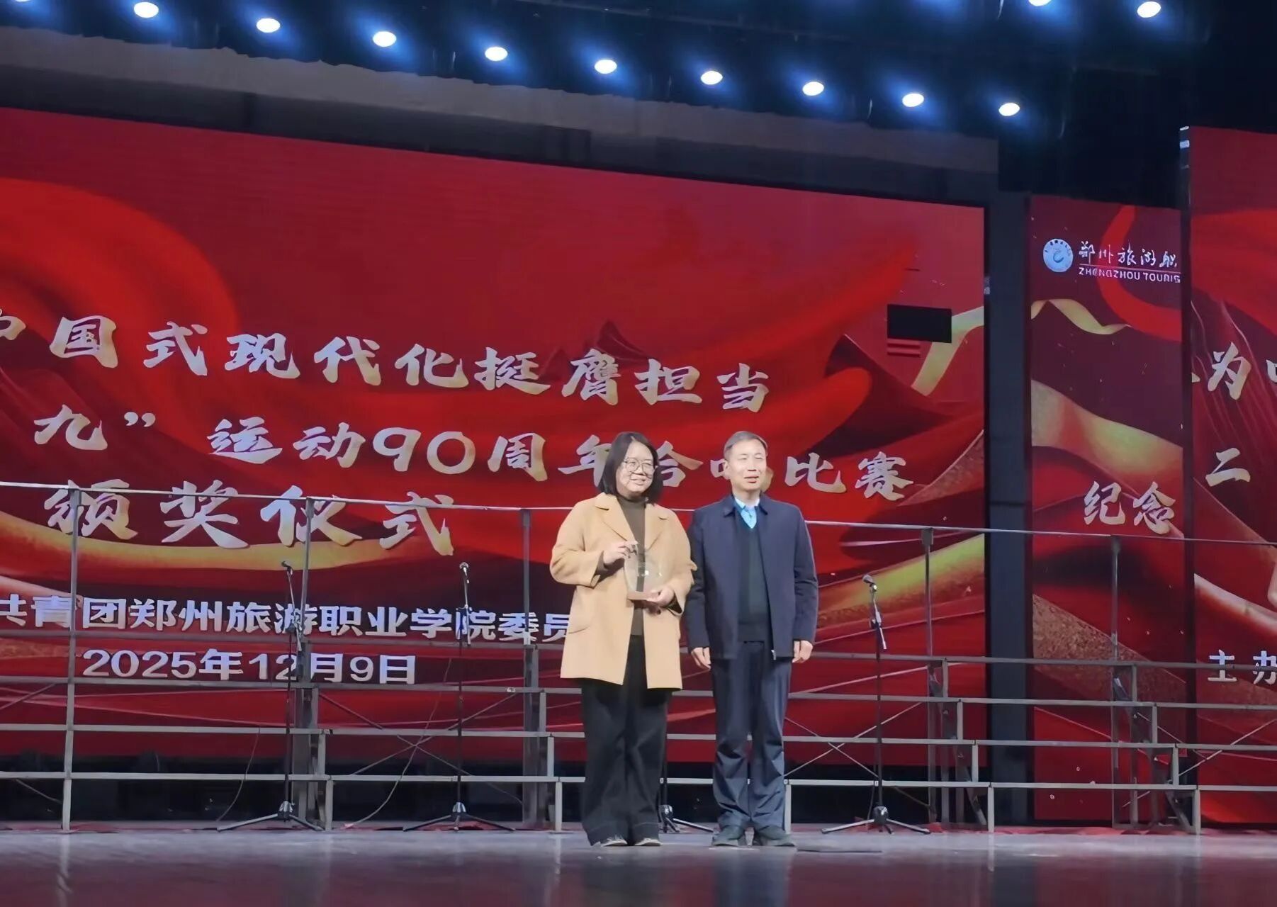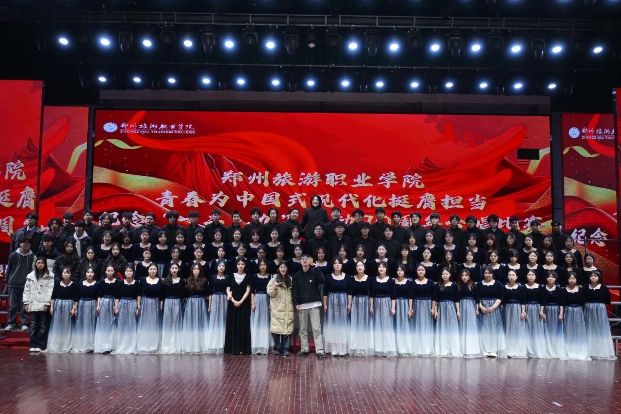 历史的回响激荡人心,爱国的情怀代代相传。为纪念“一二·九”运动,传承先辈们心怀家国、奋勇争先的爱国主义精神,引导青年学子铭记历史、勇担使命,郑州旅游职业学院于2025年12月9日在艺术中心举办纪念“一二·九”运动合唱比赛。数字文创学院合唱队凭借精心筹备与出色表现,在赛事中展现了数创学子的斗志昂扬的精神风貌。