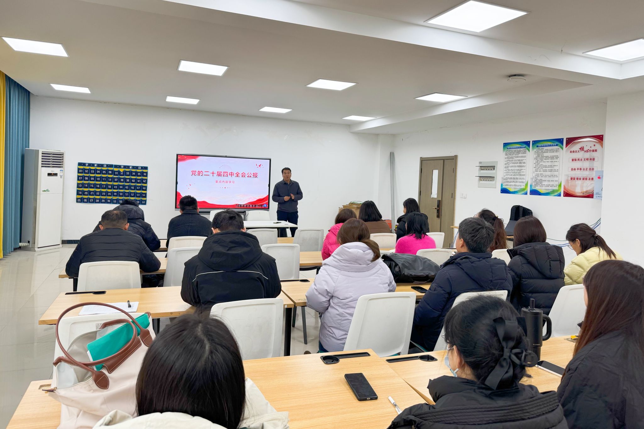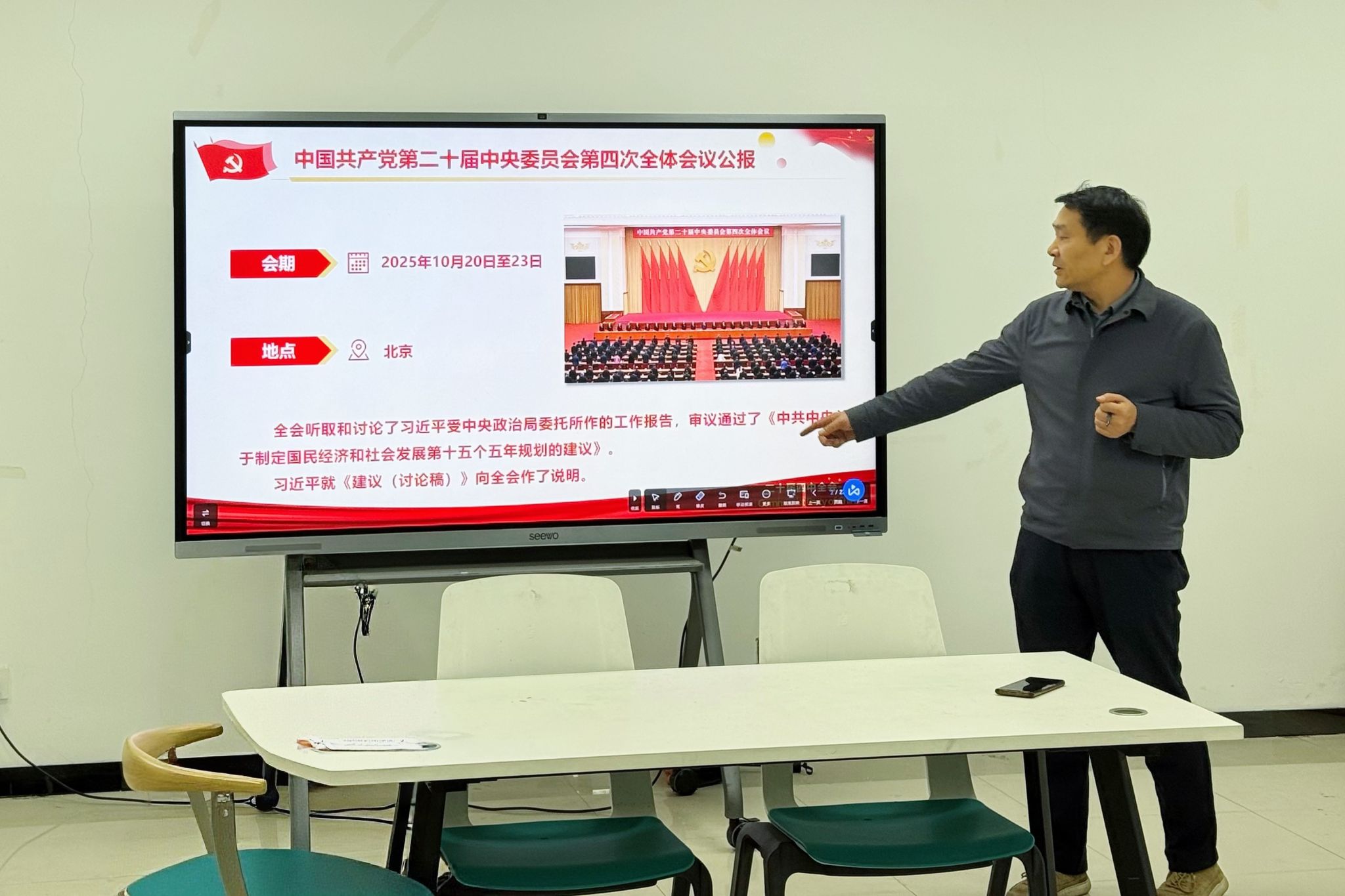 12月24日下午,数字文创学院在102会议室召开主题党课,深入学习《党的二十届四中全会公报》。学院院长韩志孝担任主讲,全院师生党员参加学习。