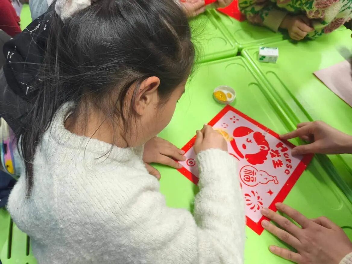 活动现场,学生干部孙瑞龄化身文化传播使者,以妙趣横生的语言为小学生们揭开“福”字的神秘面纱。从甲骨文中“福”字那象形的形态,仿佛能看到古人对幸福生活的质朴祈愿;到历代文人墨客笔下“福”字所蕴含的丰富哲理与美好期许,孩子们听得如痴如醉,眼中闪烁着对传统文化的好奇与渴望。紧接着,学生干部又现场示范福字拓印的全过程,纸张如何精准铺放、墨汁怎样均匀涂抹、拓包怎样轻轻拍打,每一个步骤都讲解得细致入微、演示得精准到位。