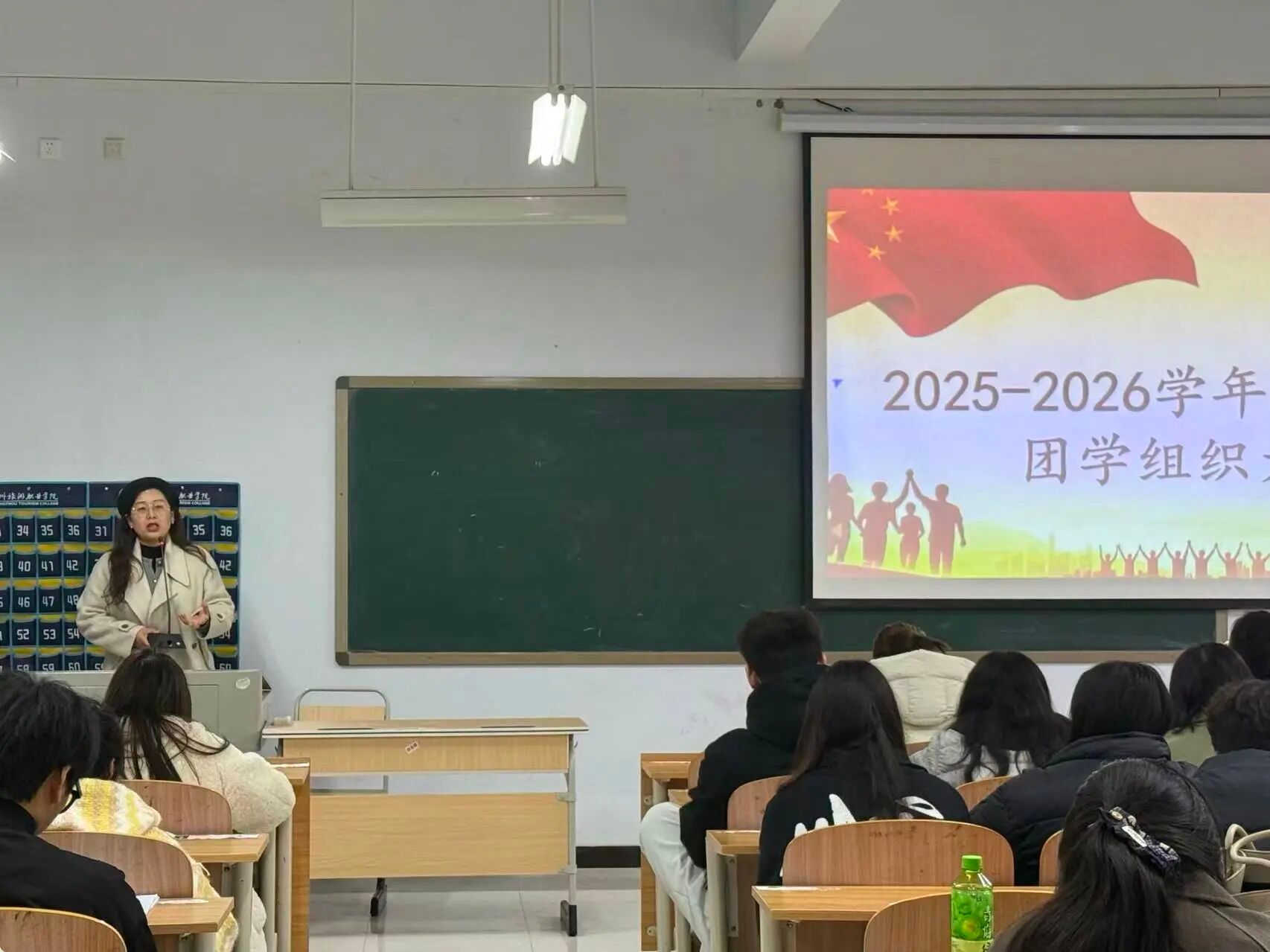 随后,冯思源为大会致辞,首先对全体团学干部长期以来的辛勤付出与无私奉献给予高度认可,对全体团学干部提出殷切期望与具体要求。她指出,团学干部是学生工作的中坚力量,更是学院学风建设、校园文化建设的排头兵,身处学院发展的关键阶段,全体团学干部必须提高政治站位、明晰自身定位。她强调,一要筑牢思想根基,端正工作态度,时刻牢记“为同学服务、为学院分忧”的初心,摒弃功利思想,以高度的责任感踏实做好每一项工作;二要坚持学干并重,平衡好专业学习与学生工作的关系,做到学业过硬、工作出彩,在实践中全面提升综合素养;三要强化团队协作,树立全局意识,主动配合、互帮互助,凝聚团队合力提升工作效率;四要发挥先锋模范作用,带头遵守校规校纪,引领优良学风校风,同时扎实做好后续队伍纳新与培养工作,为团学组织注入新鲜血液。