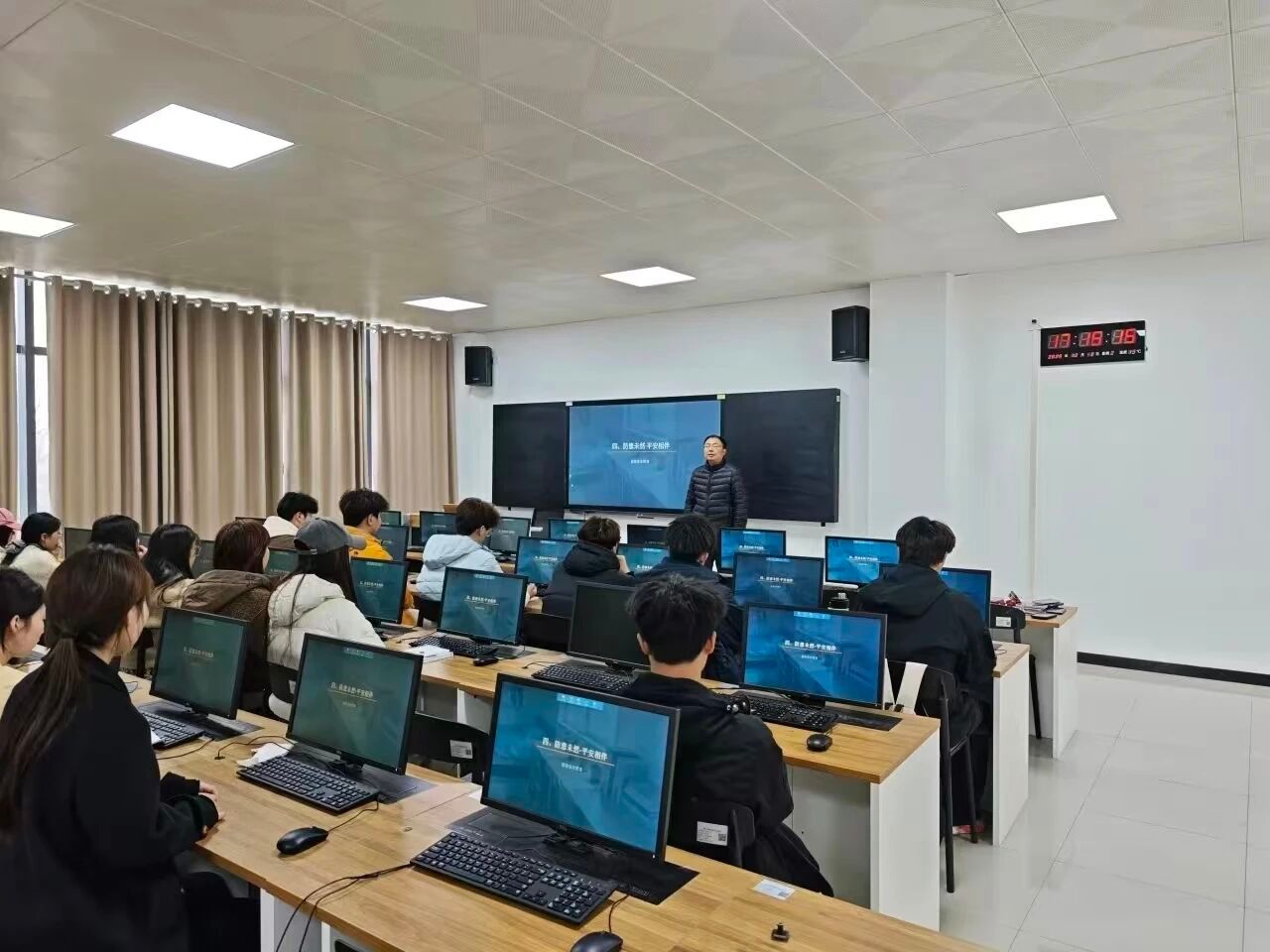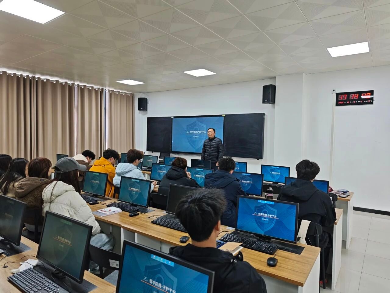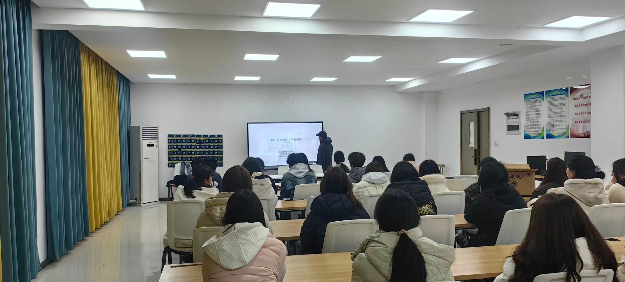 针对新学期角色转换、学业压力等问题。辅导员围绕情绪管理、压力疏导、人际交往、自我接纳等话题展开分享,引导同学们正确认识负面情绪,学会合理释放压力,主动搭建良好的同学关系、师生关系。同时普及学校心理健康咨询渠道和帮扶政策,鼓励大家遇到心理困惑及时主动求助,保持乐观向上的心态,学会悦纳自我、善待他人,以阳光心态面对新学期的各项挑战。 “筑牢防线·守护平安”