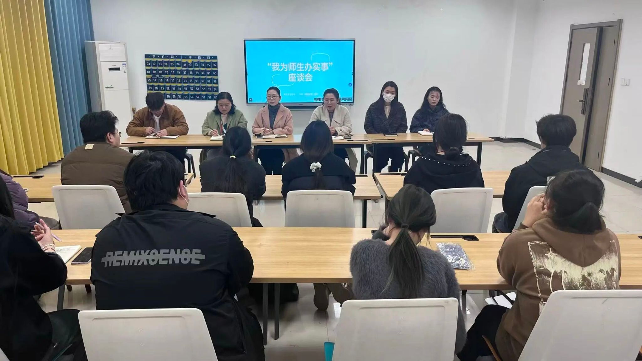 现场氛围热烈务实,学生代表结合自身实际,围绕专业课程设置、实训设备完善、校园生活保障、就业创业指导、心理健康服务等方面,坦诚表达诉求、提出针对性建议。辅导员们认真倾听记录,对疑问逐一耐心回应,能当场解决的现场明确方案;需协调推进的,详细说明调研计划与推进节点,确保“件件有回应、事事有着落”。