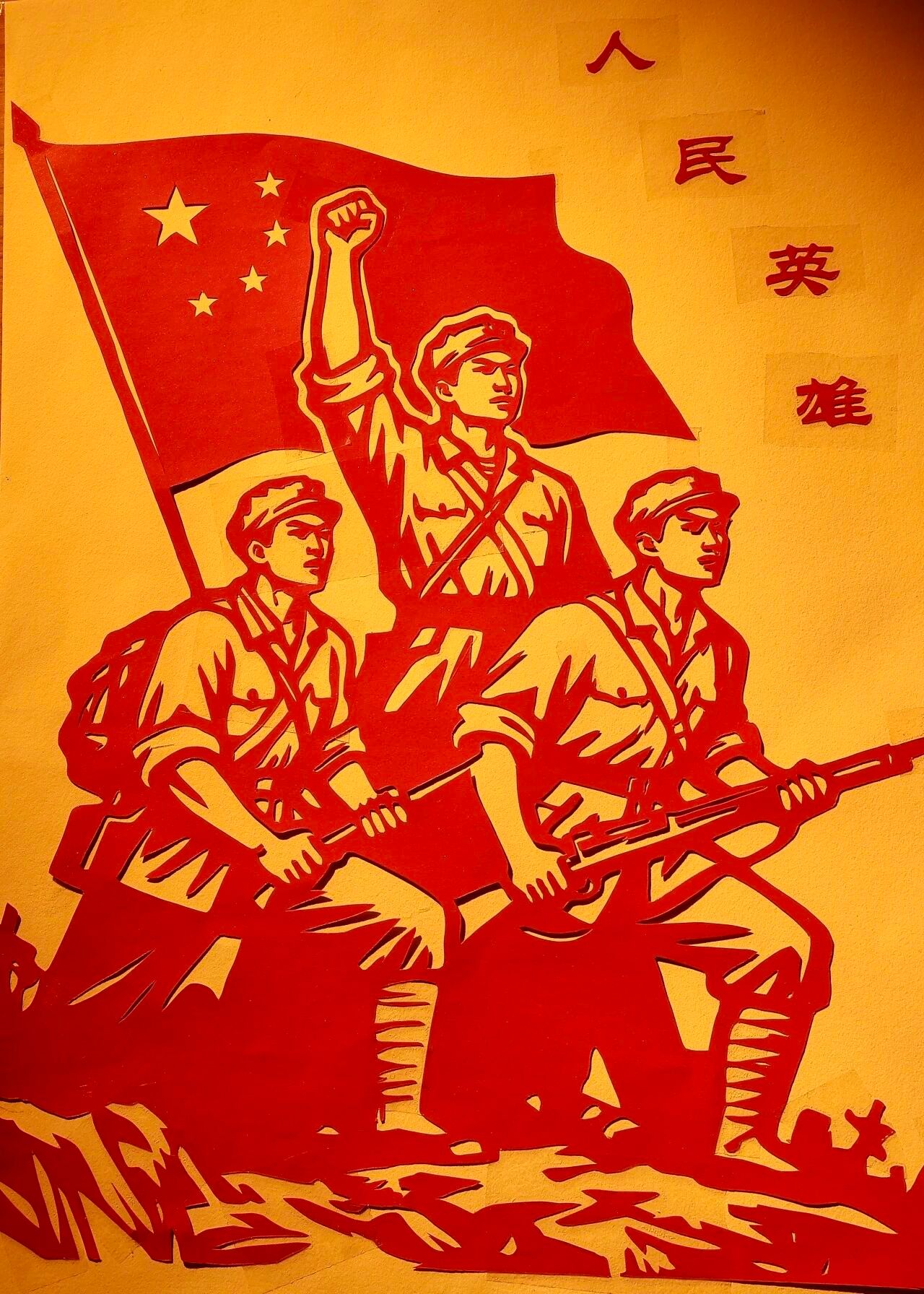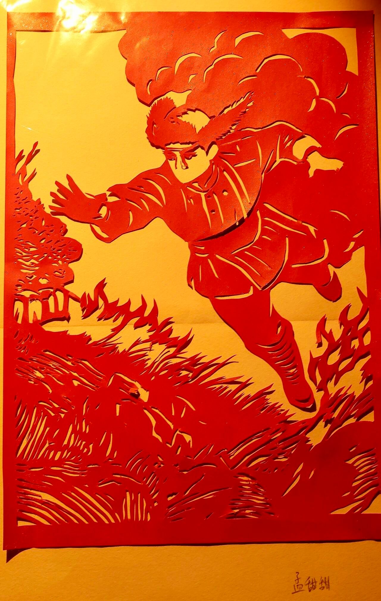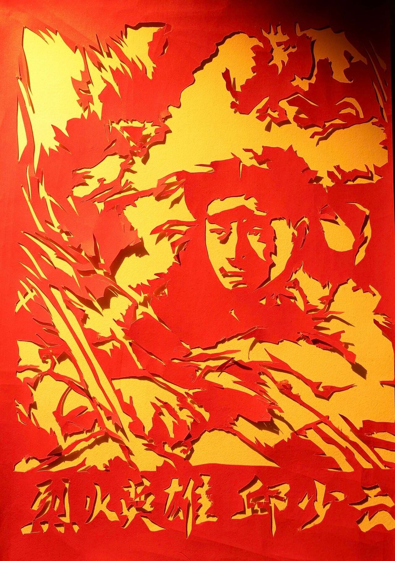 活动中,师生们精心创作了一系列主题鲜明的红色剪纸作品。从黄继光、邱少云等抗美援朝英雄的光辉形象,到杨靖宇、赵一曼等革命先烈的坚毅身影,再到人民英雄冲锋陷阵的壮阔场景,每一幅作品都线条流畅、细节饱满,既保留了剪纸艺术的传统韵味,又融入了新时代的红色内涵。学生们以光影为媒,将剪纸作品置于暖光之下,让红色剪影在明暗交错间重现英雄风貌,让英烈精神在纸与光的交融中焕发新生,实现了传统技艺与红色文化的深度融合。