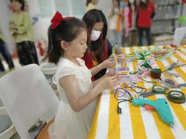 随后,大家一起前往非遗实训楼体验童趣市集,感受文化和艺术的魅力。在活动过程中,小朋友们通过参加扭扭棒手工、漆画团扇、陶艺拉胚等DIY活动,集齐印章。