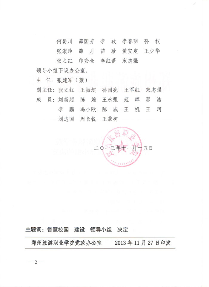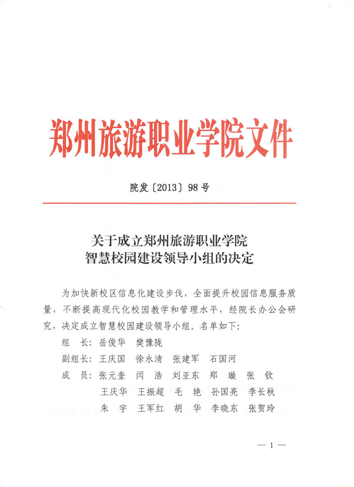为加快新校区信息化建设步伐,全面提升校园信息服务质量,不断提高现代化校园教学和管理水平,经院长办公会研究,决定成立智慧校园建设领导小组。名单如下: