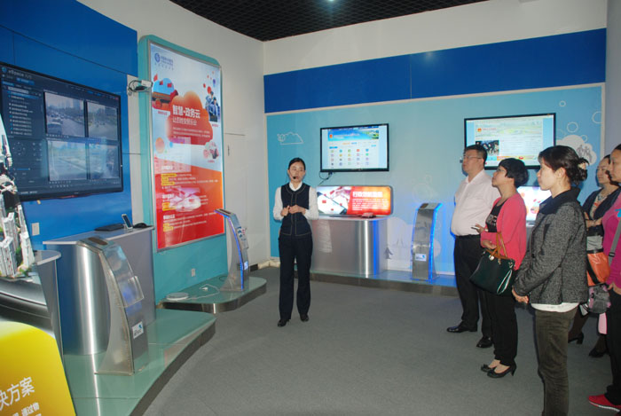 2014年4月9日上午,信息网络中心主任张之红带领校园网络科科长陈婉、现代教育技术科科长王永强及八个系的有关人员赴中国移动公司郑州分公司的“信息化体验馆”进行考察活动。张主任一行人在移动公司校园营销中心包明军主任的陪同下依次考察了移动公司开发的“4G生活”、“智慧政务”、“智慧教育”、“智慧家庭”等项目。各种先进的无线应用技术给参观的众人留下了深刻的印象。
