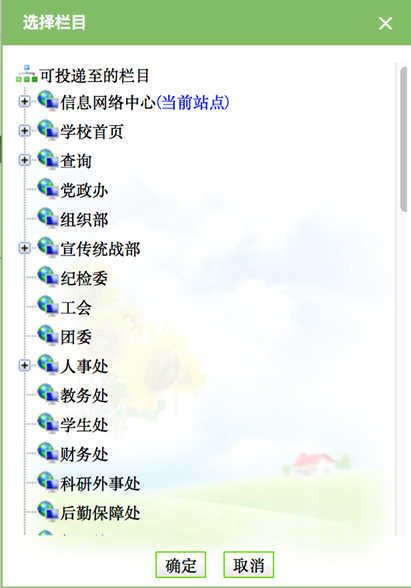 (4)文章投递:可以将当前文章投递给其他网站栏目使用。在下图中选中相应栏目即可。选中后,该文章发布时便会同时投递给相应栏目。