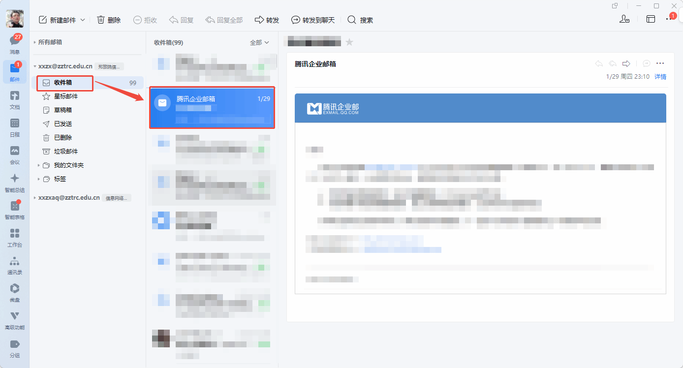 公共邮箱收到新邮件后,网页端会实时提醒,点击左侧「收件箱」即可查看所有邮件;