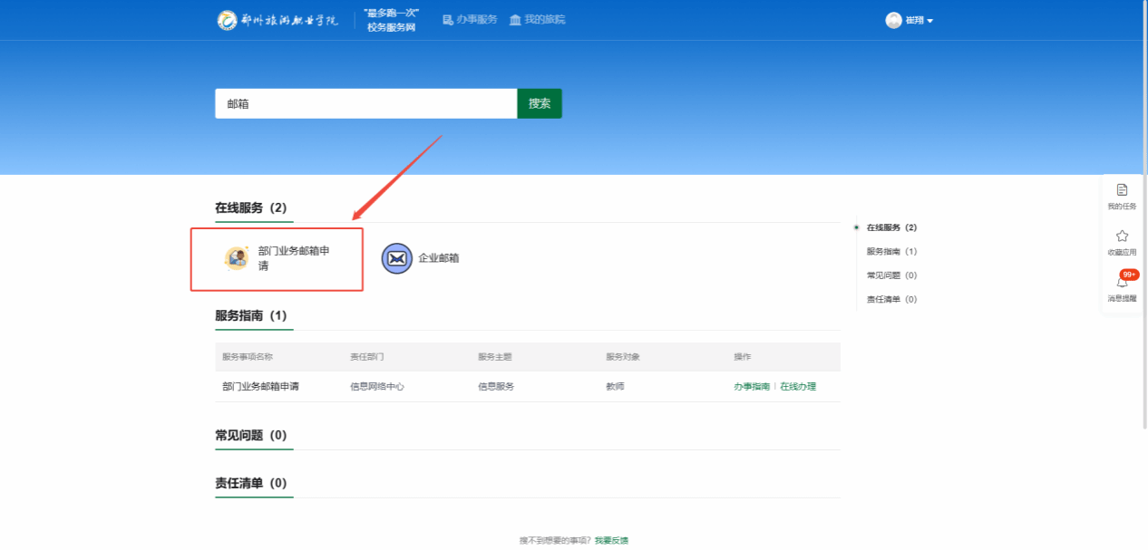 一网通办搜索部门业务邮箱申请,点击后即可线上申请。