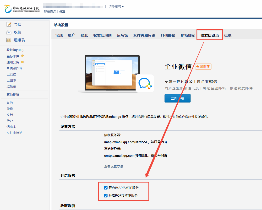 开启IMAP/POP服务:若需在客户端(如Outlook、Foxmail)登录公共邮箱,需点击「设置」→「收发信设置」,勾选“开启IMAP/POP”,并生成客户端专用密码;