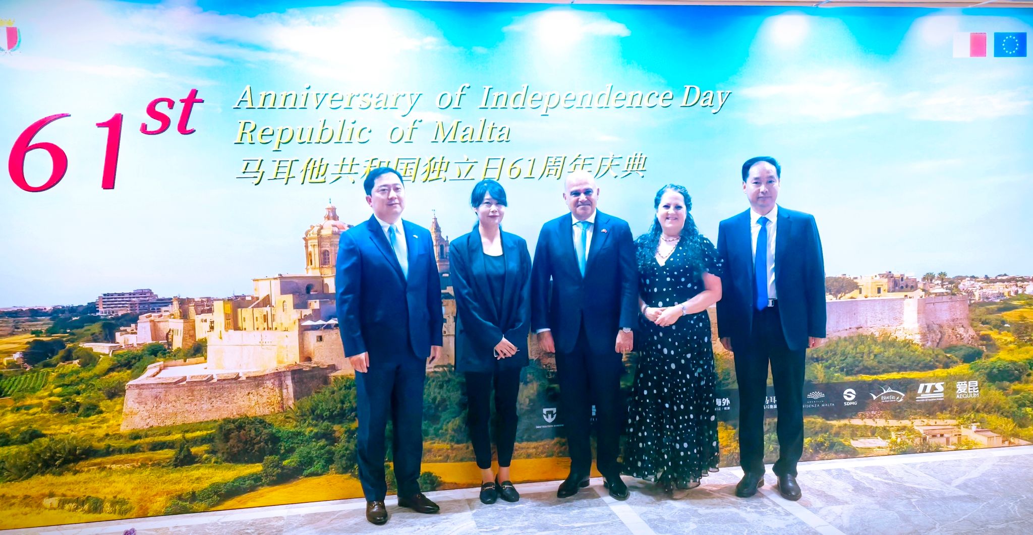 为庆祝马耳他共和国独立61周年,马耳他驻华大使馆于9月24日在北京王府半岛酒店举办了招待会。应马耳他驻华大使白瀚轩邀请,我校党委书记王艳红、校长肖世才、科研外事处处长李俊出席晚宴,与马方就进一步开展新的教育合作项目进行深入洽谈。