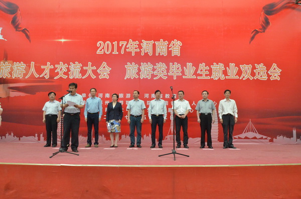 本次双选会开幕式由郑州旅游职业学院副院长徐永清主持,院长樊豫陇致欢迎辞。河南省教育厅副厅长李金川和河南省旅游局党组成员、副局长周耀霞在开幕式上分别致辞,河南省旅游局党组书记、局长寇武江宣布大会开幕。
