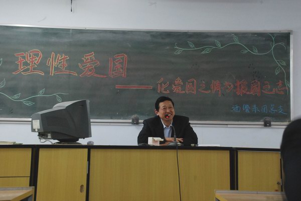 学院副院长张建军首先发言,对酒店管理系开展这样的活动进行高度的评价,希望大家能认清形势,理智爱国。