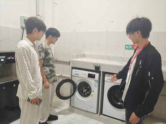 行动中,学长结合真实案例,从用电规范、消防安全、财物保管方面讲解宿舍生活注意事项,现场演示洗衣机、饮水机等公共设施操作方法并提醒维护要点;同时讲解宿舍规章制度,明确禁止夜不归宿及存放打火机、烟、大功率电器等违禁物品。