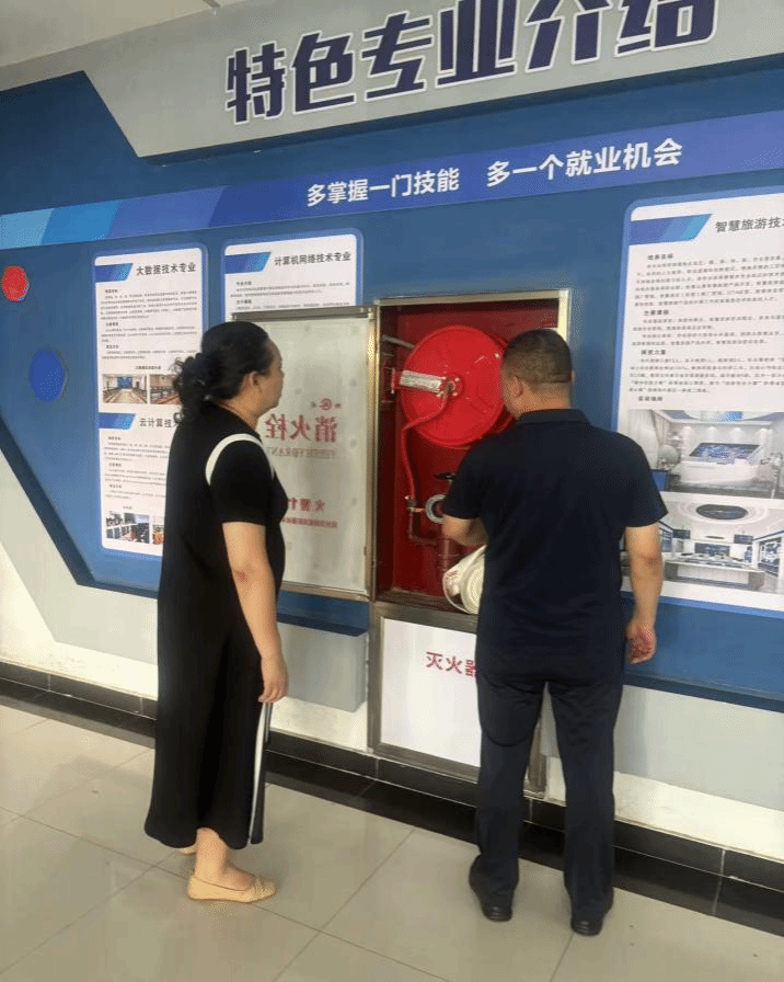 本次检查重点聚焦教学楼消防设施与安全通道两大关键领域。在消防设施核查环节,检查人员逐楼层、逐区域对灭火器进行细致排查,不仅仔细查看灭火器外观是否完好、压力值是否处于正常范围,还逐一核对生产日期与有效期,确保每一台灭火器均能在紧急情况下正常投入使用。同时,针对教学楼内的消火栓,检查人员重点检查了 “消火栓检查记录卡” 填写情况,确认所有记录均已更新至 9 月,保障消防设施管理的规范性与时效性。