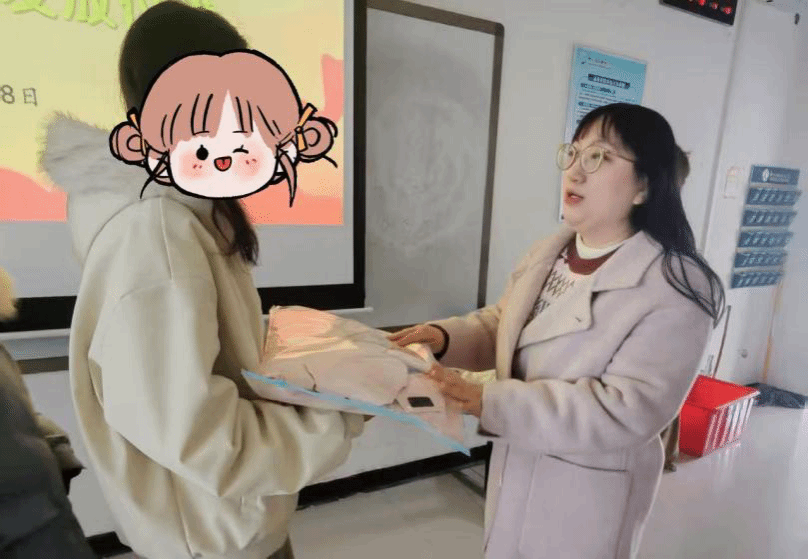中午,“暖冬行动”转至学院楼教室开展集中发放环节。周鹏与李舒亲手为受助学生递上爱心羽绒服,每一份衣物都伴着真挚问候与暖心叮嘱,传递着学校与学院的深切关怀。同学们有序排队领取,不少人拿到新衣后即刻试穿,脸上满是喜悦笑容,纷纷向学校和老师表达由衷感谢,现场氛围温馨而热烈。