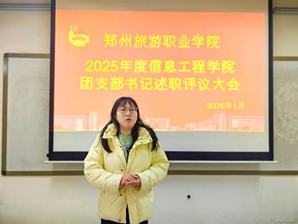 2026年1月7日,信息工程学院2025年度团支部述职评议大会在 4b111 举行,本次大会旨在全面检验年度团支部工作成效、强化基层团组织建设。党总支副书记李舒、学工办代主任付佳及各团支部书记参加会议。